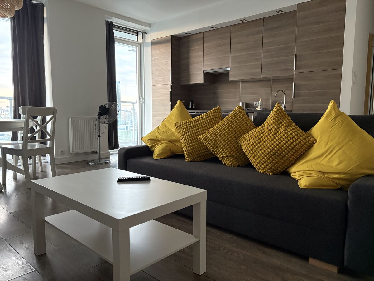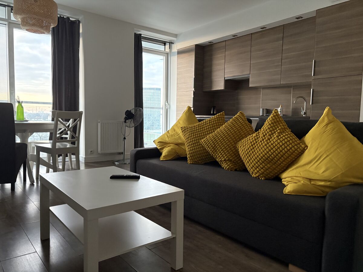 Moderne Wohnung im Zentrum der Stadt. Die Wohnung besteht aus einem Wohnzimmer mit Kochnische und einem separaten Schlafzimmer und einem Badezimmer. Die Wohnung ist minimalistisch aber funktional eingerichtet. Der Innenraum ist in hellen Farben mit kontrastierenden Accessoires gestaltet, die ein gemütliches Interieur schaffen. Elegantes Schlafzimmer bietet Ruhe und Bequemlichkeit. Die Wohnung befindet sich auf der 10. Etage, wo von den Fenstern eine schöne Aussicht, besonders nachts, ist. Die Wohnung befindet sich in einem Neubau mit Sicherheit und garantiert unseren Gästen ein Höchstmaß an Sicherheit. Wir haben auch einen Parkplatz unter dem Gebäude (gegen Aufpreis). Ausgezeichnetes Hotel für Messegäste - 5 Gehminuten von MTP und Bahnhof entfernt.